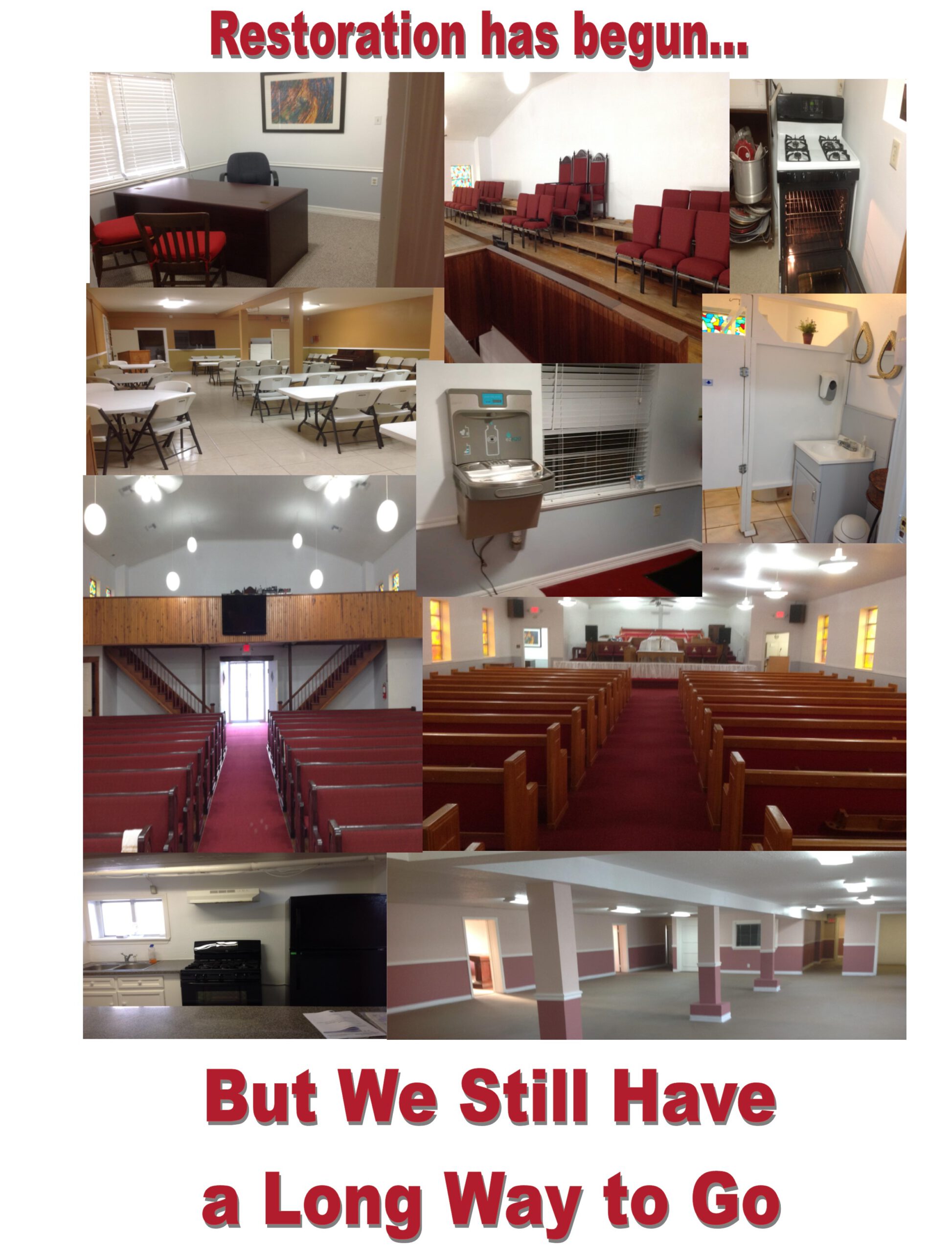 We’ve only just begun! There are several churches still working towards remediation, mold removal, repair, and renovation following this devastating experience. We look forward to completing the work this year. Thank you for your prayers and support. We give God the glory, praise, and credit.